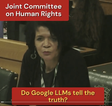 If I ask Gemini a question, will its answer be truthful? I put this to the Google Global Head of Human Rights. She said they strive for fact-based, high-quality answers – not necessarily the truth. But when truth comes with a disclaimer, how do users know what to trust? Parliament TV: https://x.com/i/status/2014737450409640299